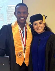 President Brimhall with PTK student/M State graduate Joseph Mugisha, at M State’s 2023 graduation ceremony in Moorhead. (M State)