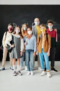 - All students, teachers, staff, and visitors in school buildings should wear masks indoors regardless of vaccination status in order to protect those who cannot yet be vaccinated or who remain at higher risk because of immune-comprised status or other conditions.